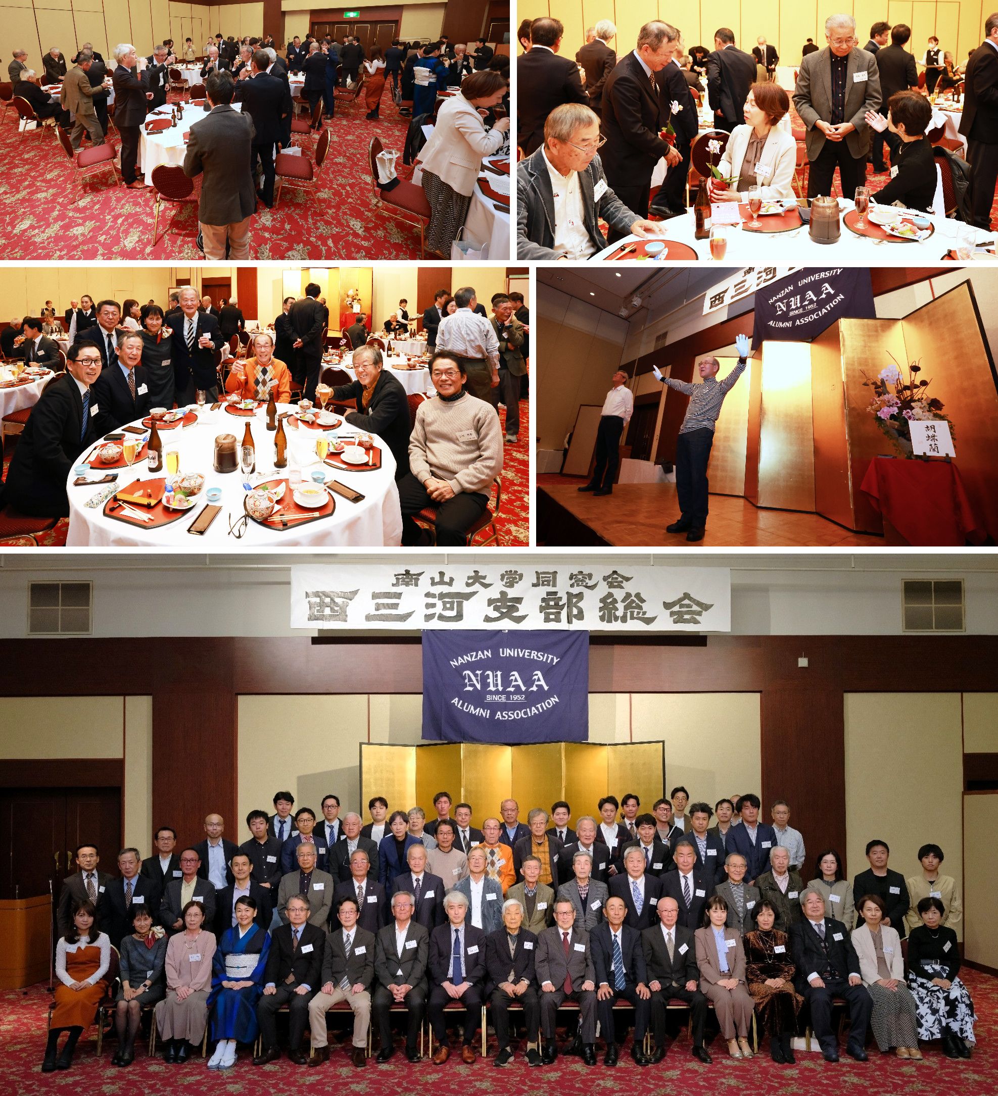 総会の横断看板や会場の盛花、樽酒の準備等々、多くの南山卒業生のご協力をいただきました。「絆」を強く感じるとともに、皆さまに深く感謝申し上げます。